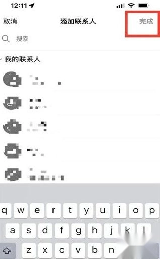 3、在好友列表里勾选想要添加的成员,确认没有问题后,点击右上角的“完成”按钮提交。