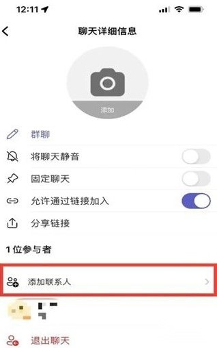 2、进入聊天详情页后,找到并点击“添加联系人”的功能入口。