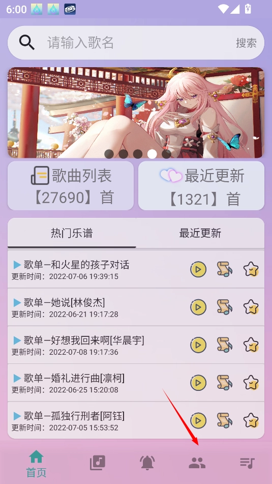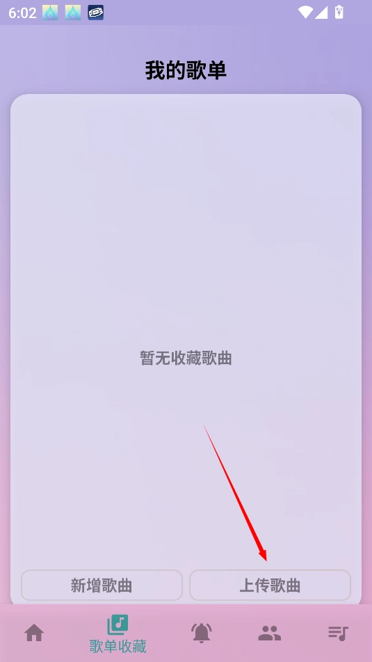 1、在中切换到歌单收藏页面,点击上传歌曲