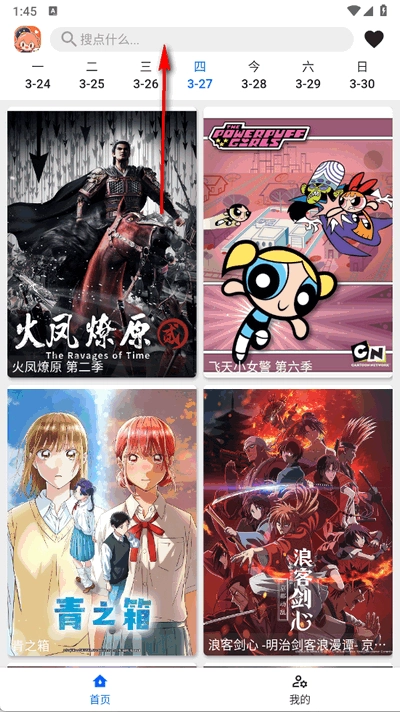 1、打开软件进入首页,点击上方搜索栏