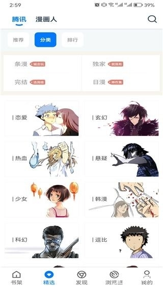 1、首先推荐板块,两大热门漫画平台,腾讯以及漫画人,超多热门漫画抢先观看。