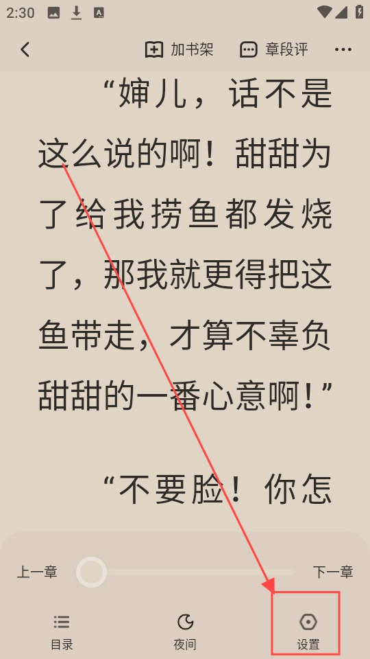 2、进入阅读页面后,找到并点击右下角的“设置”图标。