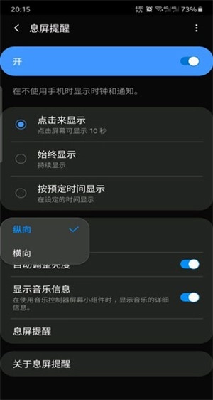 2、还有一种方法会复杂一点,得在设置里找到息屏提醒功能,把方向调整为纵向,如此就能设置成横屏状态了。